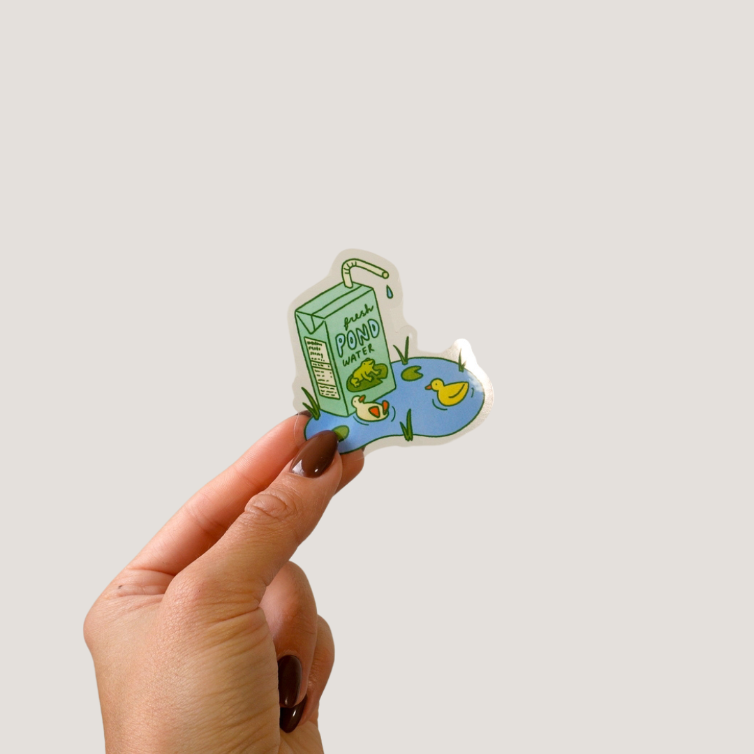 Clear sticker. Waterproof and dishwasher-safe (hand wash recommended).